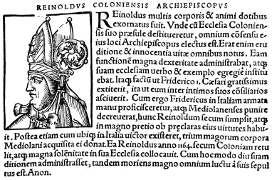 Description: An image of Rainald of Dassel, the Archbishop of Cologne (r. 1159-1167 CE).