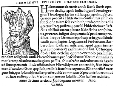 Description: An image of Herrmann of Wennerde, the Bishop of Hildesheim (r. 1162-1170 CE).