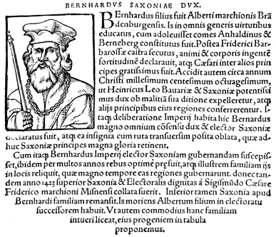 Description: An image of Bernhard, the Count of Anhalt (r. 1170-1212 CE) and the Duke of Saxony (r. 1180-1212 CE).