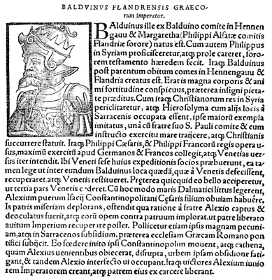Description: An image of Baldwin I, the Count of Hainaut (r. 1195-1205 CE), the Count of Flanders (r. 1195-1205 CE), and the first Latin Emperor (r. 1204-1205 CE).