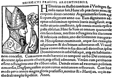 Description: An image of Heinrich II von Veringen, the Archbishop of Strasbourg (r. 1202-1223 CE).