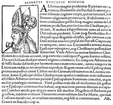 Description: An image of Albert Suerbeer, the first Archbishop of Riga (r. 1245-1273 CE).