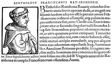 Description: An image of Berthold of Ratisbon, a 13th century Franciscan monk at the monastery of Ratisbon.