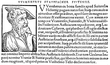 Description: An image of Werner Stauffacher, who represented the canton of Schwyz at the legendary Rütlischwur of 1291.