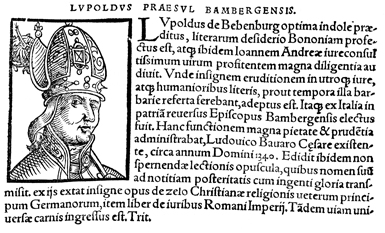 Description: An image of Leopold II von Egloffstein, the Bishop of Bamberg (r. 1335-1343 CE).