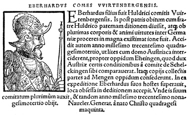Description: An image of Eberhard II, the Count of Württemberg (r. 1344-1392 CE).