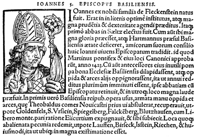 Description: An image of Johann IV von Fleckenstein, the Bishop of Basel (r. 1423-1436 CE).