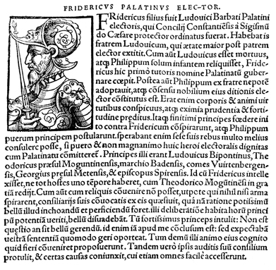 Description: An image of Frederick I, the Count Palatine of the Rhine and Elector Palatine (r. 1451-1476 CE).