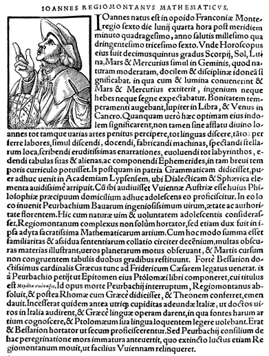 Description: An image of Johannes Müller von Königsberg, or Regiomontanus, a German mathematician and astronomer.