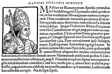 Description: An image of Matthias Freiherr of Rammingen, the Bishop of Speyer (r. 1464-1478 CE).
