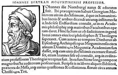 Description: An image of Johann Betram, a philosopher and theologian at the University of Mainz in the late 15th century.