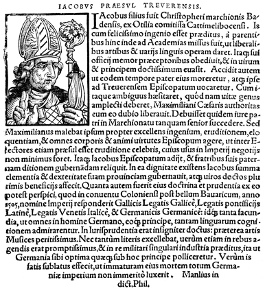 Description: An image of Jakob II of Baden, the Archbishop of Trier (r. 1503-1511 CE).