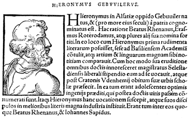 Description: An image of Hieronymus Gebwiler, the leader of the local Latin school in Sélestat (1501-1509 CE).