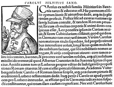 Description: An image of Karl Milicius, a supporter of Jan Hus from Saxony.