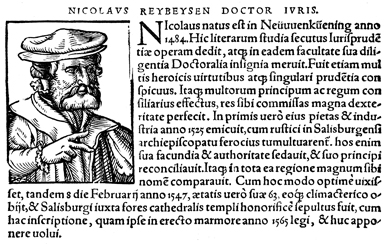 Description: An image of Nicolaus Reibeisen, a lawyer who acted as an agent of the Archbishop of Salzburg during the peasant revolts.