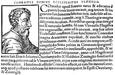 Description: An image of Conrad Somius, an evangelist of Ulm.