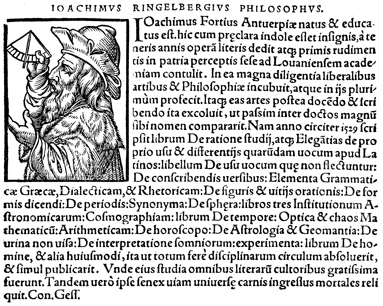 Description: An image of Joachim Sterck van Ringelbergh, or Joachimus Fortius Ringelbergius, a Flemish humanist, mathematician, and astrologer.