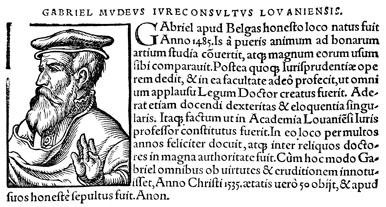 Description: An image of Gabriel Mudaeus, born Gabriël van der Muyden, a Flemish jurist and humanist.