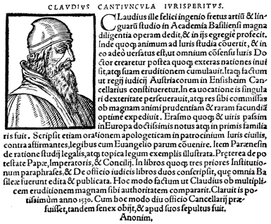 Description: An image of Claudius Cantiuncula, a German legal scholar.