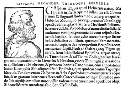 Description: An image of Kaspar Megander, a Reformed theologian from Zürich and strong supporter of Ulrich Zwingli.