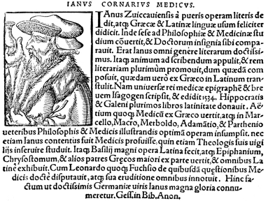Description: An image of Janus Cornarius, a humanist and friend of Erasmus from Saxony.