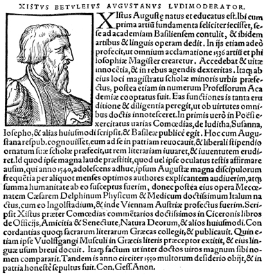 Description: An image of Xystus Betuleius, or Sixtus Birck, the German humanist of Augsburg.
