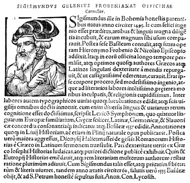 Description: An image of Gelenius, also know as Sigismund Gelen or Sigmund Gelen, a Greek scholar and humanist.