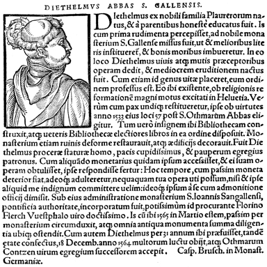 Description: An image of Diethelm, an Abbot of the Abbey of Saint Gall.