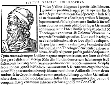 Description: An image of Justus Velsius, a Dutch scholar from The Hague.