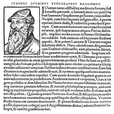 Description: Johannes Oporinus (German, Johannes Herbst) was a native of Basel, worked as a copy editor in the print shop of Johann Froben, taught Latin and Greek in the city, and finally, opened his own printing business there.