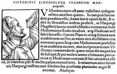 Description: An image of Victorin Schönfeld (1525-1591), a medical doctor, mathematician, and professor at the University of Marburg. He wrote an important treatise on epilepsy.