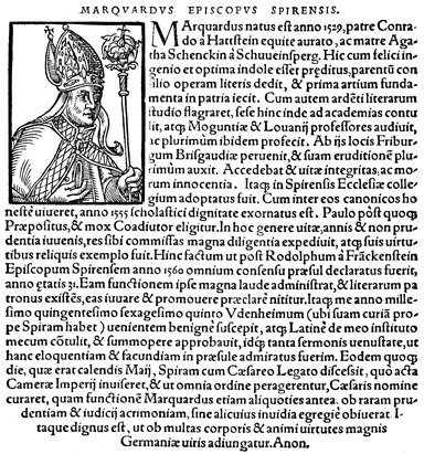 Description: An image of Marquard Freiherr of Hattstein, the Bishop of Speyer (r. 1560-1581 CE).