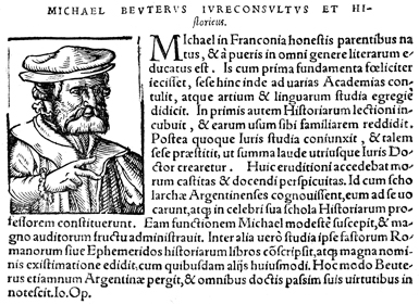 Description: An image of Michael Beuther, a German historian, poet, jurist, and civil servant.