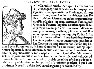 Description: An image of Conrad Dinner, a German poet educated in Freiburg who served as a counsilor to the Bishop of Würzburg.