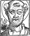 Description: An image of Saint Anacletus I, or Cletus, traditionally held to be the third Pope of the Roman Catholic Church and Bishop of Rome (r. 79-88 CE). He is depicted with a nimbus; to the left is a blank coat of arms with the papal triple tiara on above.