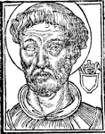Description: An image of Saint Callixtus I, or Callistus I, Pope of the Roman Catholic Church and the Bishop of Rome (r. 217-222 CE). He is depicted with a nimbus; to the right is a blank coat of arms with the papal triple tiara above.