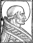 Description: An image of Saint Adeodatus I, or Deodatus I, Pope of the Roman Catholic Church and the Bishop of Rome (r. 615-618 CE). He wears a pallium and is depicted with a nimbus; to the left is a blank coat of arms with the papal triple tiara above.