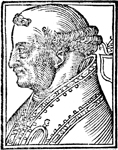 Description: An image of Conon, Pope of the Roman Catholic Church and the Bishop of Rome (r. 686-687 CE). He wears a pallium while to the right is a blank coat of arms with the papal triple tiara above.