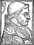 Description: An image of Gregory III, Pope of the Roman Catholic Church and the Bishop of Rome (r. 731-741 CE). He wears a pallium while to the left is a blank coat of arms with the papal triple tiara above.