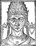 Description: John X, pope of the Roman Catholic Church and the bishop of Rome (r. 914-928). He wears a crown, while to the left is a crozier and to the right a blank coat of arms with the papal triple tiara above.