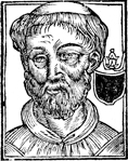 Description: Stephen VII, pope of the Roman Catholic Church and the bishop of Rome (r. 928-931). To the left is a blank coat of arms with the papal triple tiara above.