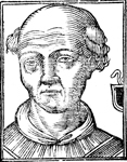 Description: John XII, pope of the Roman Catholic Church and the bishop of Rome (r. 955-964). To the left is a blank coat of arms with the papal triple tiara above.