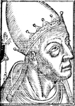 Description: Leo VIII, pope of the Roman Catholic Church and the bishop of Rome (r. 964-965). He wears a crown while to the left is a blank coat of arms with the papal triple tiara above. Leo was also an Antipope from 963 to 964.