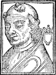 Description: John XVII, pope of the Roman Catholic Church (r. 1003). He wears a pallium while to the right is a blank coat of arms with the papal triple tiara above.