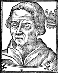 Description: Clement II, pope of the Roman Catholic Church (r. 1046-1047). To the left is a coat of arms with the papal triple tiara above.