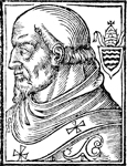 Description: Innocent II, pope of the Roman Catholic Church (r. 1130-1143). To the right is a coat of arms with the papal triple tiara above.