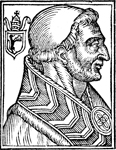 Description: An image oflestine IV, pope of the Roman Catholic Church and bishop of Rome (r. 1241). He wears a pallium; to the left islestine’s coat of arms with the papal triple tiara above.