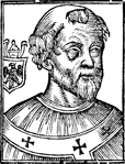Description: Alexander IV, pope of the Roman Catholic Church and bishop of Rome (r. 1254-1261). He wears a pallium; to the left is Alexander’s coat of arms with the papal triple tiara above.
