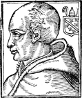 Description: Clement VI, pope of the Roman Catholic Church and bishop of Rome (r. 1342-1352). To the right is Clement’s coat of arms with the papal triple tiara above and the crossed keys of the kingdom of heaven behind.