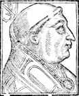 Description: Paul II, pope of the Roman Catholic Church and bishop of Rome (r. 1464-1471). He wears a pallium; to the left is a coat of arms with the papal triple tiara above.